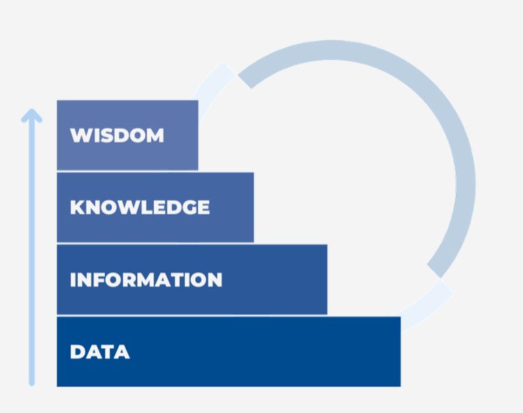 La piramide DIKW (Dati, Informazione, Conoscenza, Saggezza) descrive il processo attraverso cui i dati grezzi si trasformano in sapere strutturato e utile.